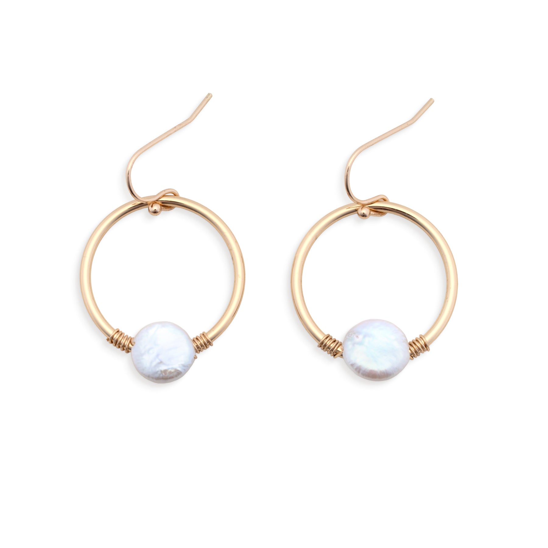 Small gold hoop with tiny coin pearl