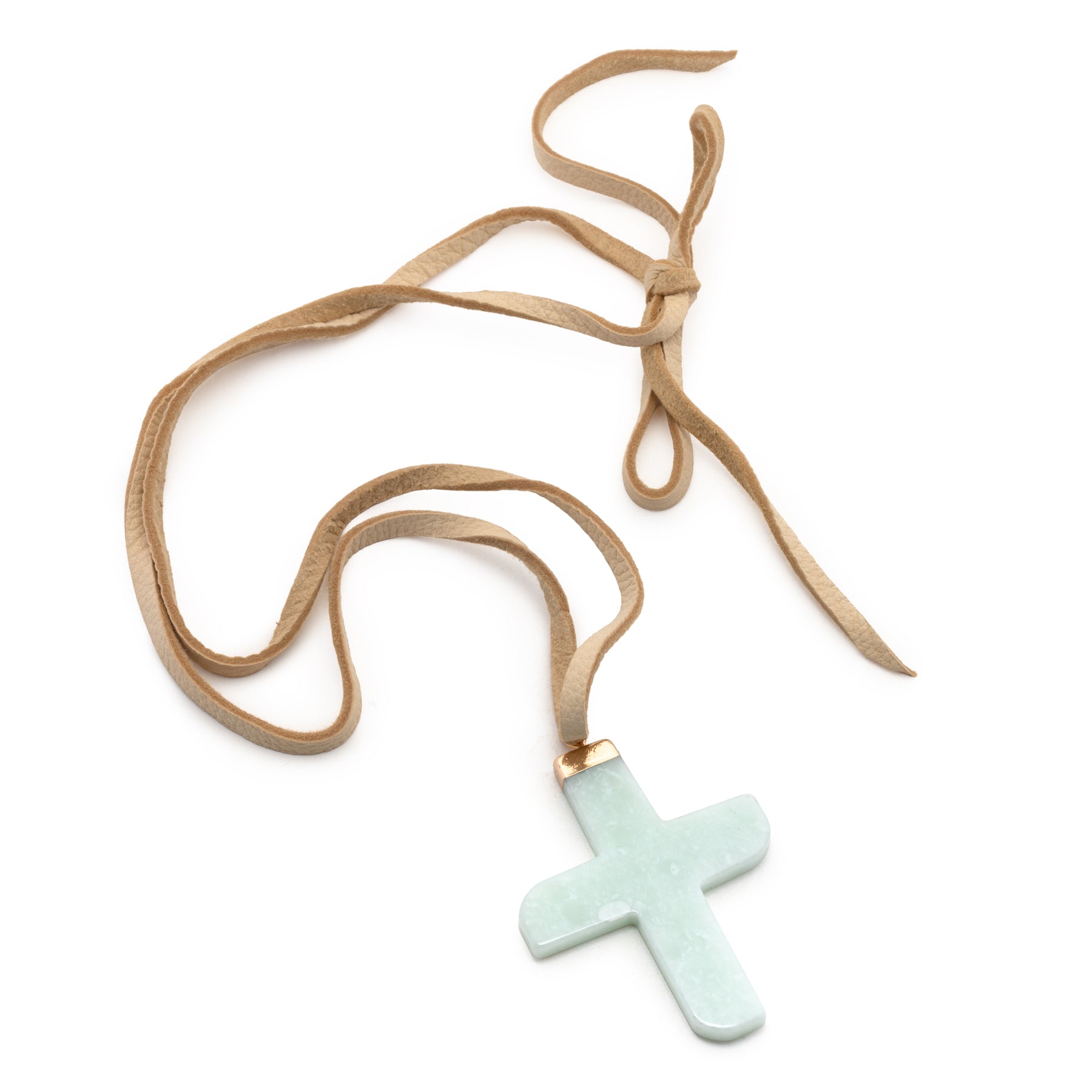 Deerskin lace necklace with large amazonite cross stone (2"x3")