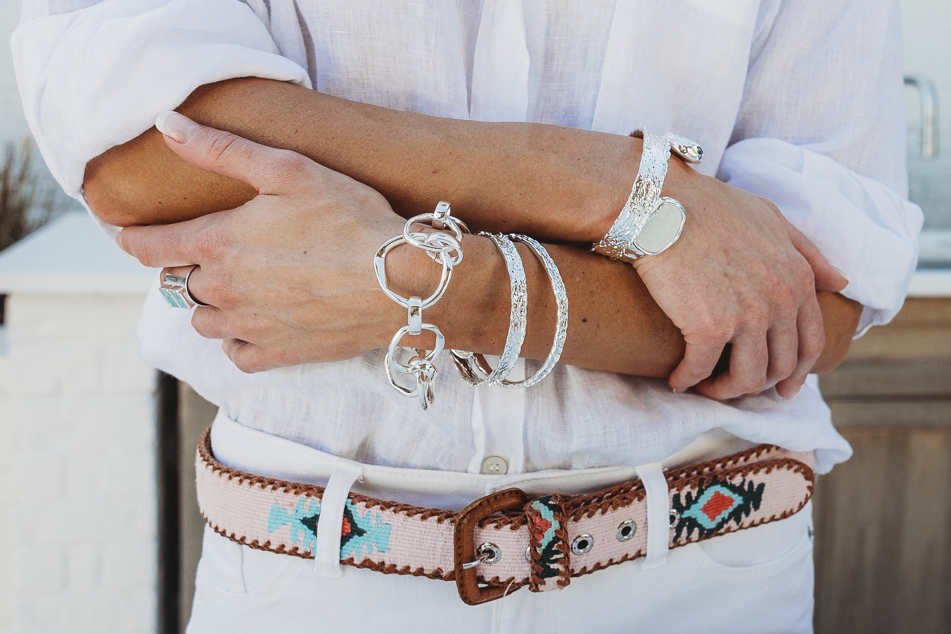 Protect the plating of your jewelry by removing it when washing your hands, swimming, exercising, cleaning and before applying any kind of personal body product.