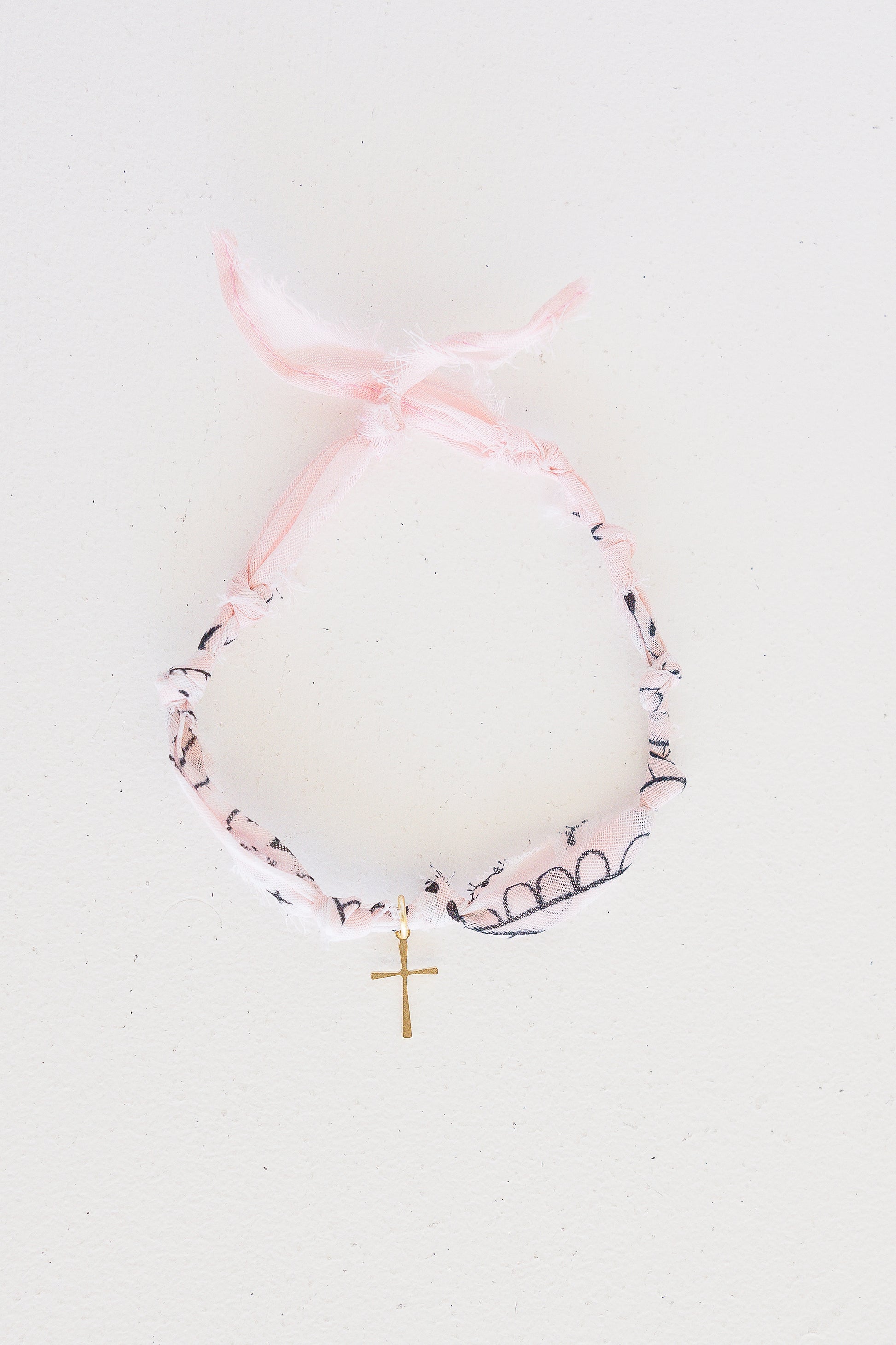 Pink bandana bracelet with gold cross charm |