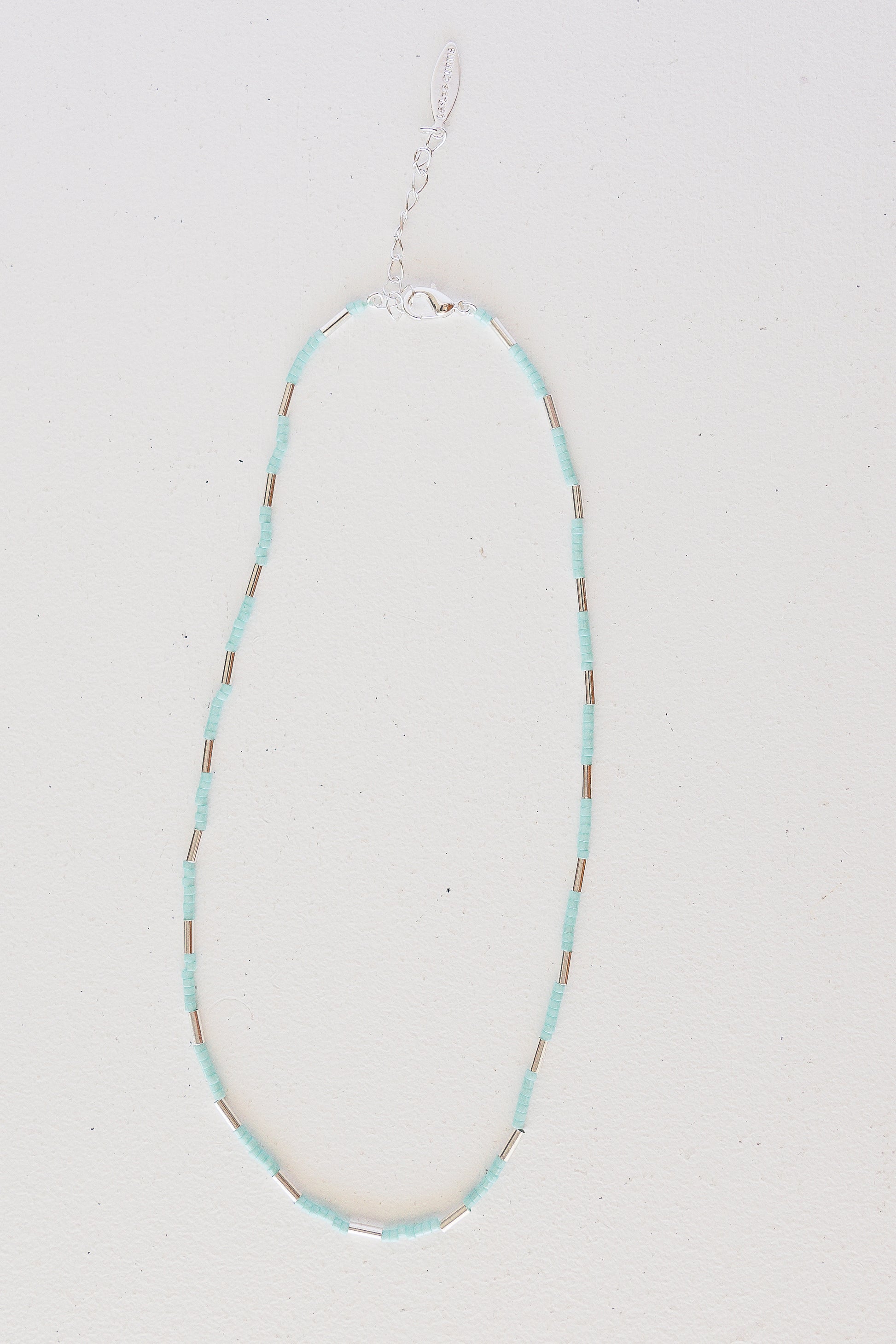 | beaded light turquoise layering necklace 15" with 2" extender |